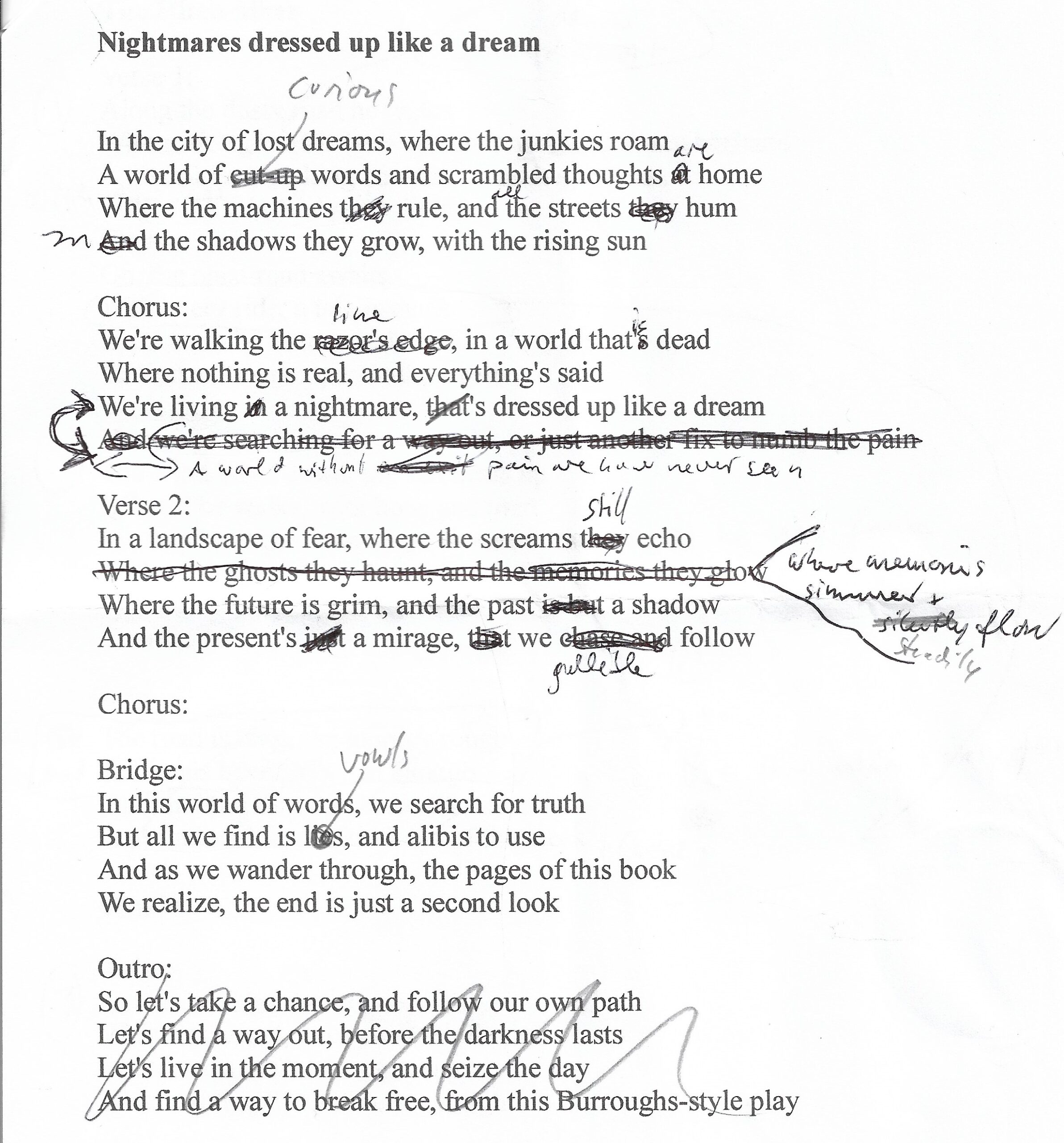 Is this perfect now? I can't feel it. Sure, I had fun tweaking the lines, also finding a clearer angle on the lyric, but for me it still lacks one crucial thing, the reason I am writing lyrics, songs, poetry, novels: the joy I have applying artistic expression to personal feelings, emotions and ideas, breathing a soul into something new, when words and worlds appear from nowhere or deep within, when the time flies while I am in the zone.