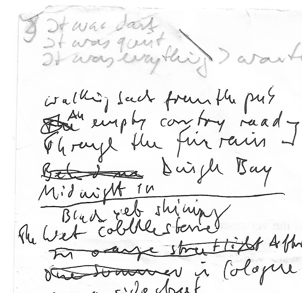 Crossed out “in orange streetlight”, I knew right away I used that somewhere else, because that was the moment after leaving the little movie theatre in Cologne where I watched “Angel Heart”, “Raising Arizona” and other gems more than once. Never forget that light – and the silence afterwards.